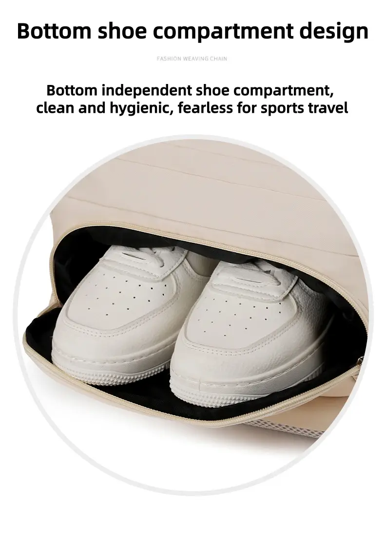The specialized independent shoe compartment keeps footwear separate from other items. This clever wet-dry separation backpack prevents cross-contamination effectively. Multiple organized pockets protect electronics and documents securely. The smart business backpack design includes dedicated laptop and tablet sleeves. Everything remains accessible and well-protected during travel.
